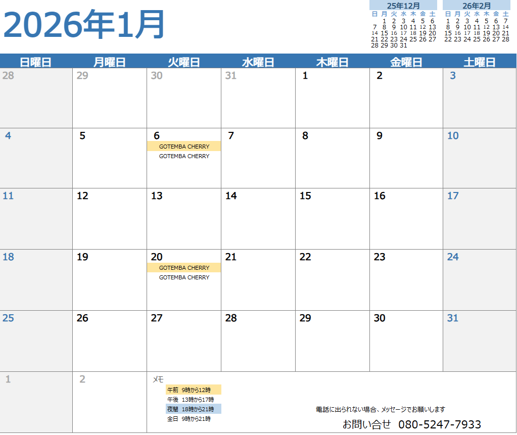 出られない場合は携帯のメッセージでお願いします (番号通知でお願いします)